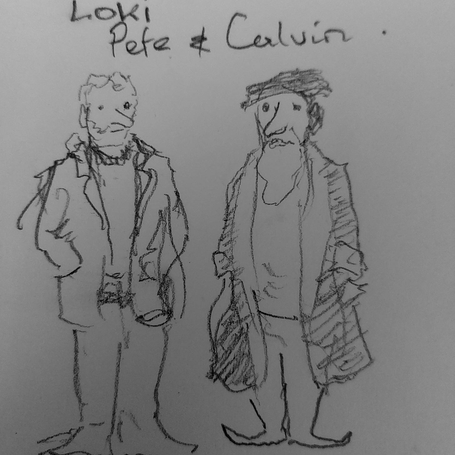 First thing I needed was a character or characters to star. After some thought and scribbled ideas, all of which I rejected, I landed on this.