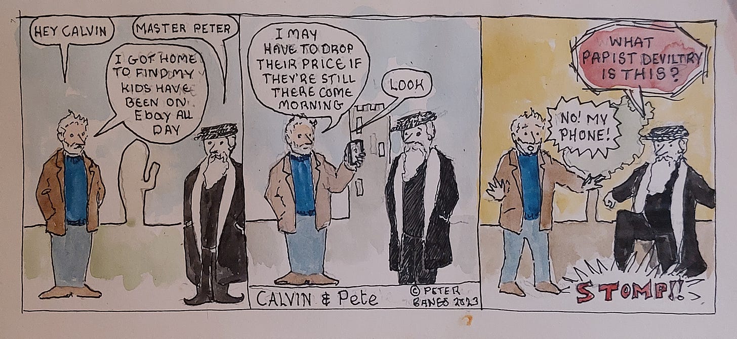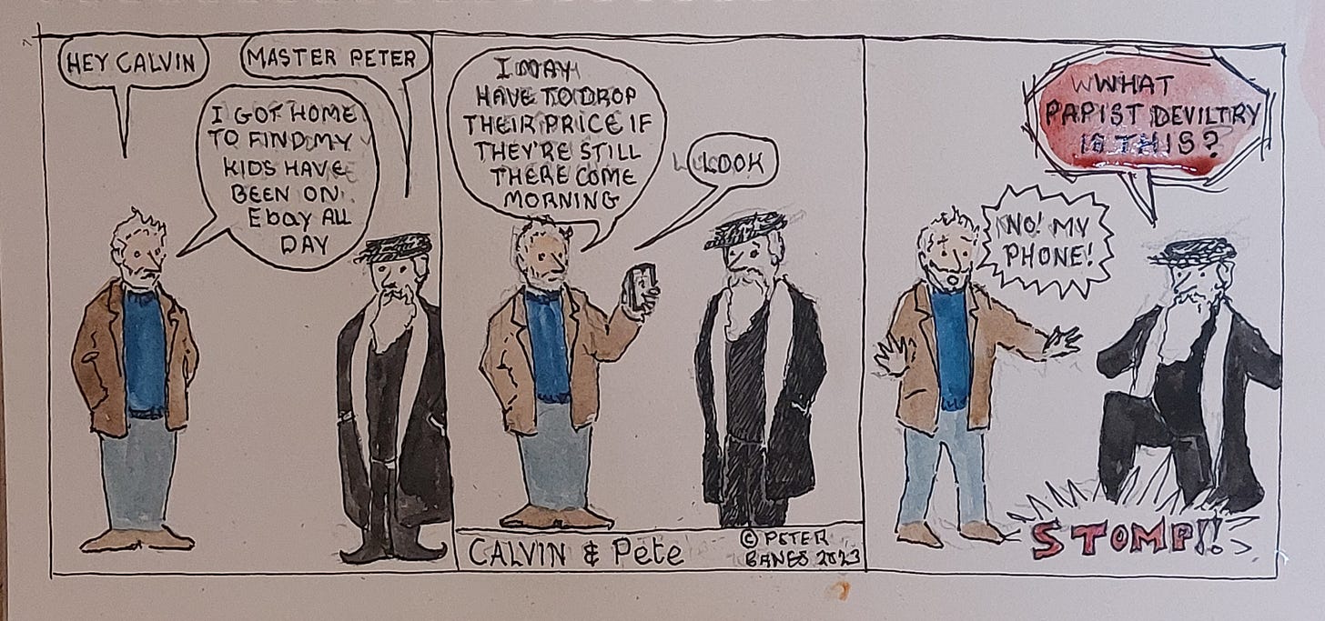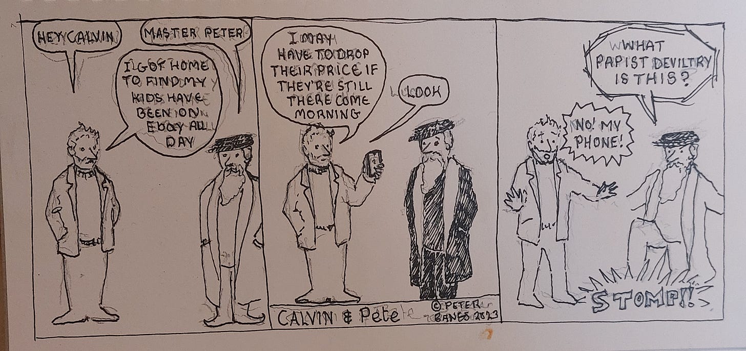 Some of the best Scottish situation comedy comes from Calvinists - they make ideal foils for the really funny line from their non-Calvin brethren. I do not like humour mocking people - except Calvinists.